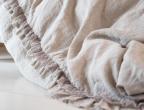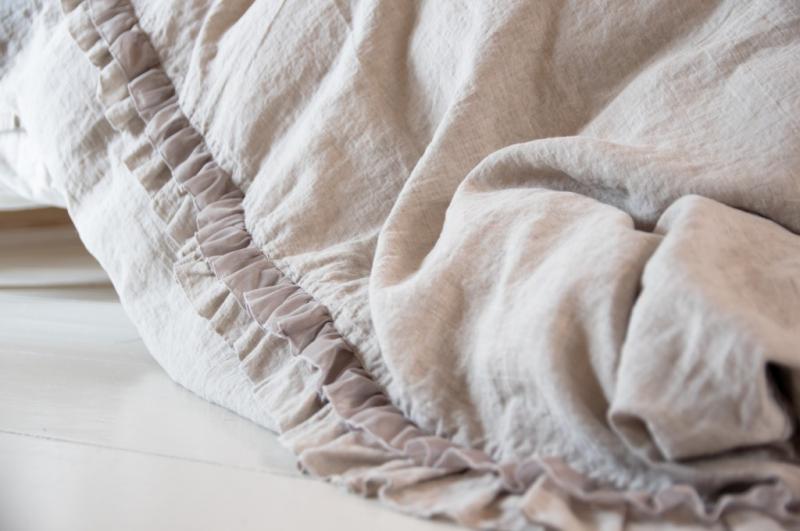 Made of 100% natural linen fabric. The duvet cover is from a lightweight fabric. These products won’t shrink in the wash thanks to a special treatment-wash. The material is silky-soft to the touch and does not need ironing.